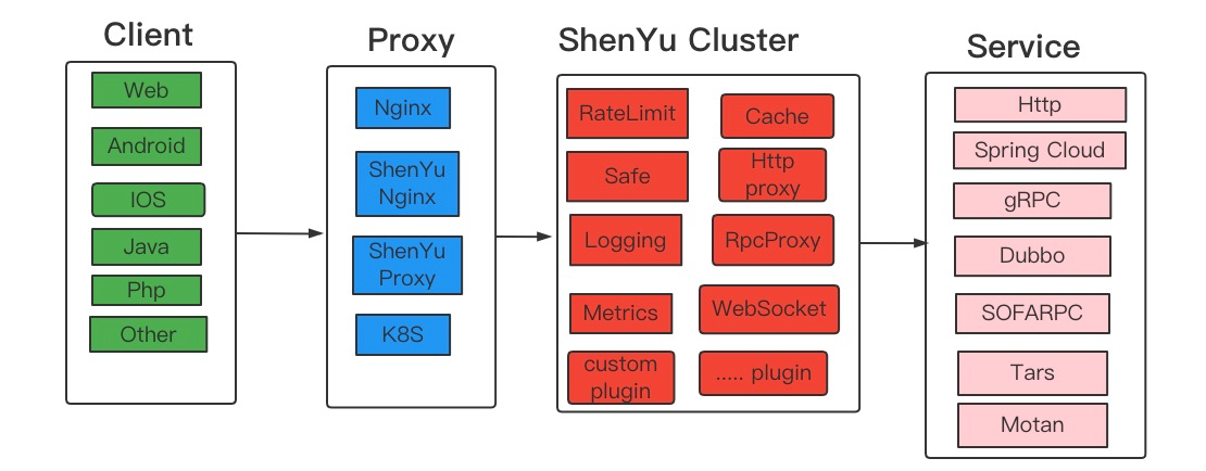 Apache ShenYu (incubating) High-performance,multi-protocol,extensible,responsive API Gateway. Compatible with a variety of mainstream framework systems, support hot plug, users can customize the development, meet the current situation and future needs of users in a variety of scenarios, experienced the temper of large-scale scenes. Rich protocol support: Http, Spring Cloud, gRPC, Dubbo, SOFARPC, Motan, Tars, etc.