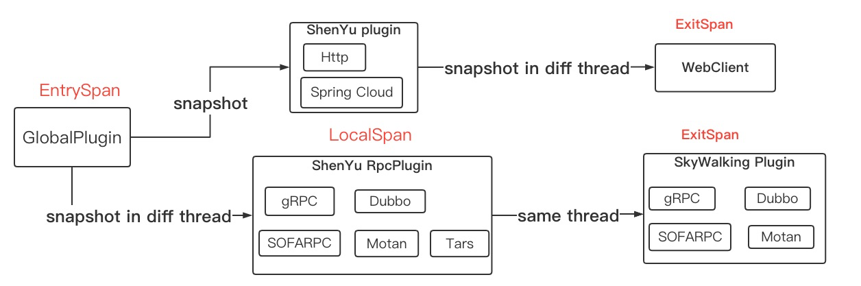 You may ask if it is possible to create LocalSpan inside a generic plugin, instead of creating one separately for ShenYu RPC plugin? The answer is no, because you need to ensure that LocalSpan and ExitSpan are in the same thread, and ShenYu is fully linked asynchronously. The code to create LocalSpan is reused in the implementation.